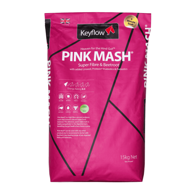 Do not use boiling water as it may harm the live probiotics. For best results soak fresh and use within 2 hours. Feed together with a balanced diet. Introduce Pink Mash into feed gradually over a minimum of 7 days, any dietary changes should be made gradually. Total roughage offered should be between 1-2% of bodyweight daily.